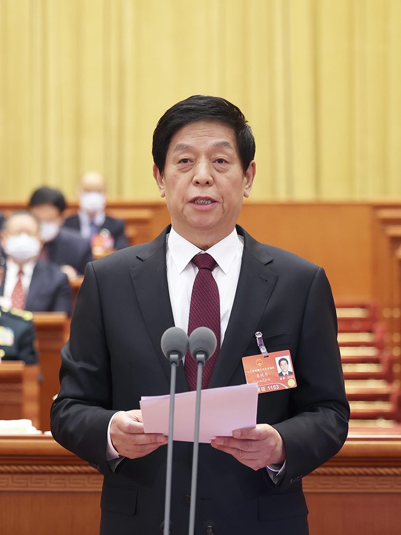 3月11日,第十三届全国人民代表大会第五次会议在北京人民大会堂闭幕。大会主席团常务主席、执行主席栗战书主持闭幕会并发表讲话。 新华社记者 黄敬文 摄