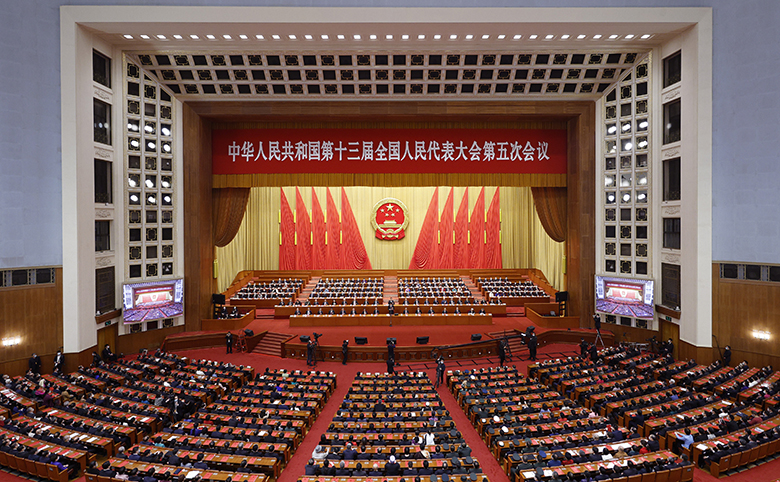 3月11日,第十三届全国人民代表大会第五次会议在北京人民大会堂闭幕。 新华社记者 刘彬 摄