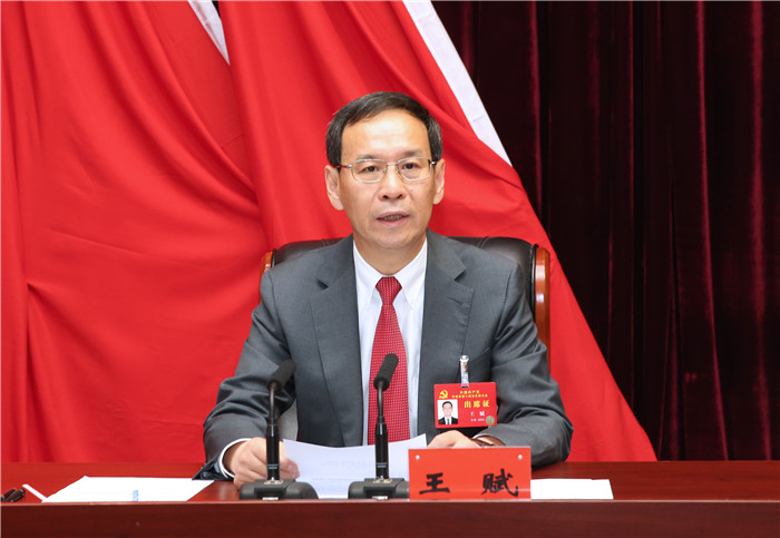 王赋同志当选为中共甘肃省第十四届纪律检查委员会书记,代表新当选的省纪委常委会讲话。(田蹊 摄)