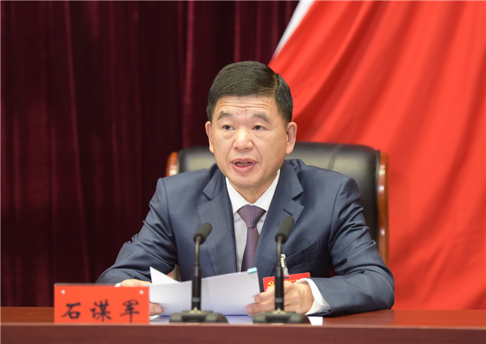 石谋军同志宣读有关候选人预备人选名单,并就人事安排有关情况作说明。(王彬 摄)