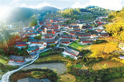党的十八大以来,湖南省花垣县十八洞村坚持“实事求是、因地制宜、分类指导、精准扶贫”的理念,成功实现了从深度贫困苗乡到小康示范村寨的“华丽转身”。图为十八洞村的景象。新华社发(陈思汗 摄)