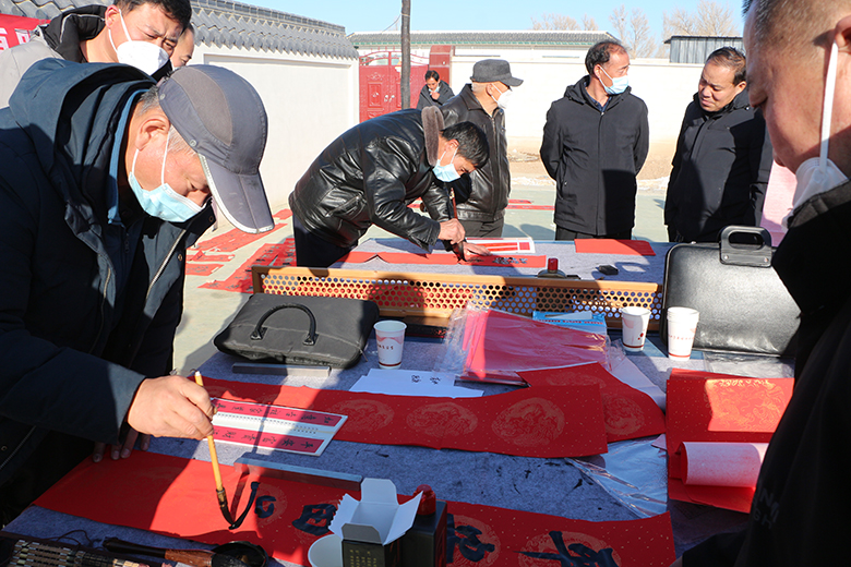 “清风盈袖,袖里清风肩上任;正气满怀,怀中正气世间春”“迎春纳廉弘正气,新韶如意倡廉风”,一幅幅吉祥喜庆、墨香四溢的春联不一会儿就被村民们一抢而光。