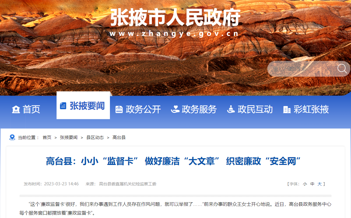 “这个‘廉政监督卡’很好,我们来办事遇到工作人员存在作风问题,就可以举报了……”前来办事的群众王女士开心地说。近日,高台县政务服务中心每个服务窗口都摆放着“廉政监督卡”。