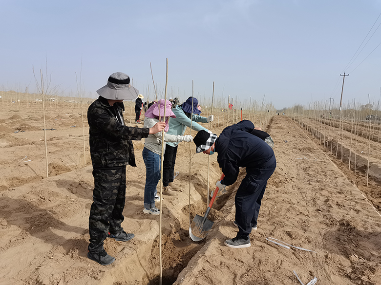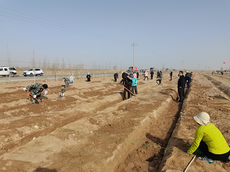 植树现场,大家热情高涨,干劲十足,全身心地投入到植树活动中,大家三人一组、五人一行,拉线标点、挥锹铲土、扶树正苗、筑埂培土,配合默契,各个环节衔接有序,道道工序一丝不苟,活动现场到处都是忙碌的身影和劳动的欢声笑语。经过一天的辛勤劳动,一棵棵小树迎风挺立,一个个栽植穴整齐排布,一片片植树地平整有序,为春天增添了一抹清新绿意和盎然生机。