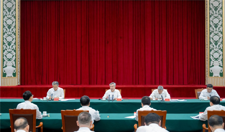7月25日至29日,中共中央政治局常委、中央纪委书记李希在新疆调研。这是7月26日,李希主持召开部分省区纪委书记座谈会。 新华社记者 翟健岚 摄