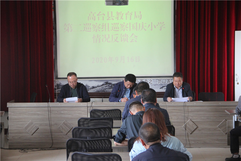 9月16日,县教育局第二巡察组巡察国庆小学情况反馈会召开,第二巡察组组长、县教育局副局长杨建新及巡察组全体成员,学校中层以上领导及教师代表参加了会议。