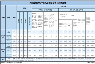 11月23日,中央纪委国家监委公布了2023年10月全国查处违反中央八项规定精神问题汇总情况。今年10月,全国共查处违反中央八项规定精神问题9567起,批评教育帮助和处理13770人,其中,党纪政务处分9333人,这是连续第122个月公布月报数据。