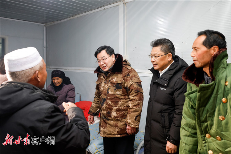 省委书记胡昌升、省长任振鹤12月20日深入受灾村镇检查指导群众安置等抗震救灾重点工作,看望慰问奋战一线的救援队伍,强调要认真贯彻习近平总书记重要指示精神,全面落实党中央、国务院决策部署,时刻把受灾群众安危冷暖放在心上,紧紧围绕“有力有序有效推进抗震救灾、确保受灾群众满意”这条主线,因地制宜妥善安置受灾群众,倾情倾力做好基本生活服务保障,切实让群众感受到党和政府的关怀和温暖。