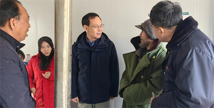 甘肃省委常委、省纪委书记、省监委主任王赋在受灾群众马彪的安置房里慰问。