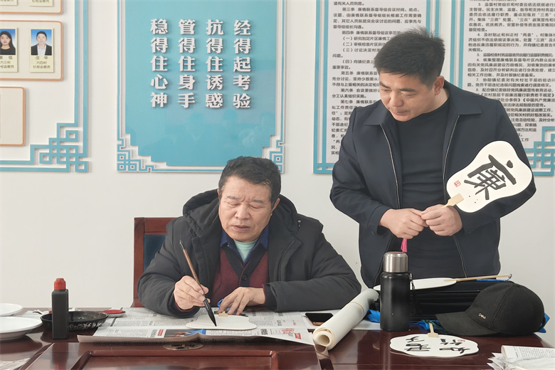 邀请的书法老师围绕“风清气正”“清正廉洁”等关键词精心构思书写漆扇,该镇纪委书记还结合老师们的作品,适时的讲述与之相关的廉政故事和经典诗词,深入浅出地阐述了廉洁文化的内涵,党员干部们将书写了廉政格言的扇面与漆扇工艺结合,绘制出一面面独具匠心的“清风扇”。