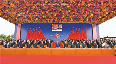 王沪宁发表讲话。他说,1965年9月,在党中央亲切关怀和党的民族政策光辉照耀下,西藏自治区宣告成立。这是西藏发展史上具有划时代意义的大事,巩固了西藏和平解放和民主改革的伟大成果,实现了西藏社会制度的历史性跨越。60年来,西藏经济社会全面发展,民族区域自治制度成功实践,民族团结日益巩固,各族人民生活蒸蒸日上,充分展现了中国共产党领导的坚强力量,充分展现了我国社会主义制度的显著政治优势。