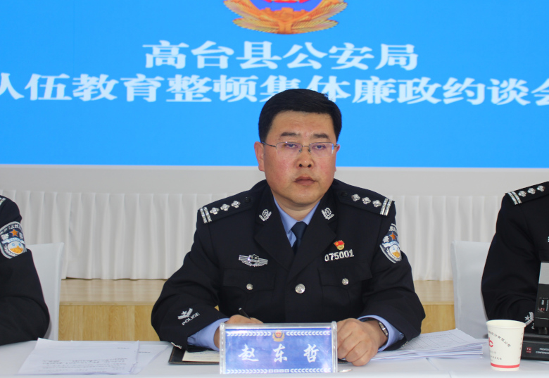 为深入推进党史学习教育和公安队伍教育整顿,进一步筑牢广大民辅警遵规守纪和廉洁自律意识,4月2日下午,高台县公安局召开队伍教育整顿集体廉政约谈会议。会上,县政府副县长、公安局党委书记、局长、督察长赵东哲对局党委班子成员、局属各队所室中层负责人及局机关全体民辅警进行了集体廉政约谈。